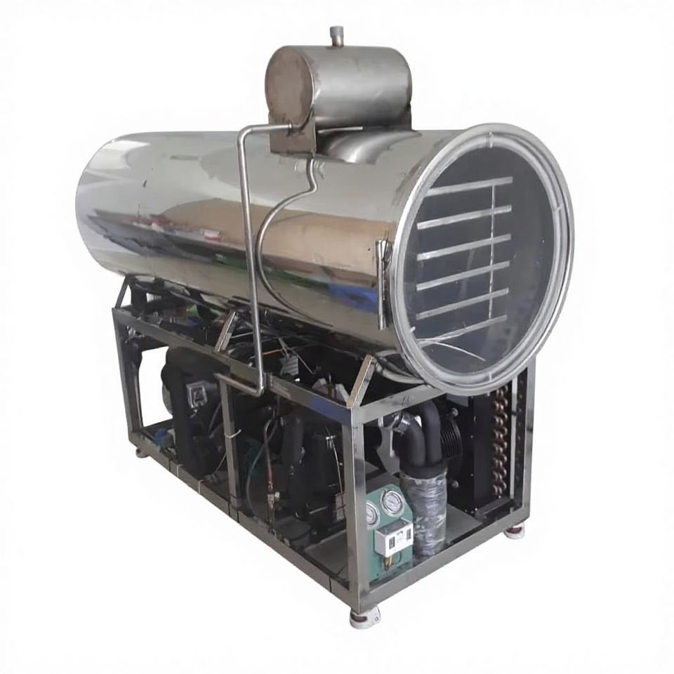 เครื่องทำแห้งแบบแช่เยือกแข็งอัตโนมัติเชิงพาณิชย์ รุ่น WHFD-100 วัสดุสแตนเลสใหม่ พร้อมมอเตอร์ PLC ระบบสุญญากาศ สำหรับการแปรรูปอาหารแบบซับลิเมชั่น
