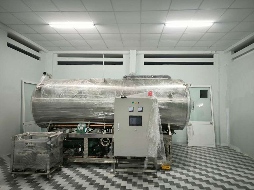 เครื่องอบแห้งแบบแช่แข็งอัตโนมัติเชิงพาณิชย์ รุ่น WHFD-100 ควบคุมด้วย PLC พร้อมมอเตอร์ทำความร้อนด้วยไอน้ำ วัสดุ SUS316L ใช้งานได้ยาวนาน