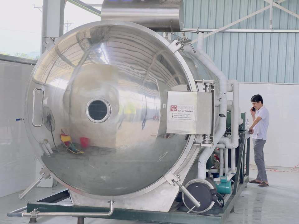 เครื่องอบแห้งแบบแช่เยือกแข็งด้วยระบบสุญญากาศอัตโนมัติ ควบคุมด้วย PLC ทำจากสแตนเลสสำหรับการแปรรูปอาหาร รุ่น WHFD-100