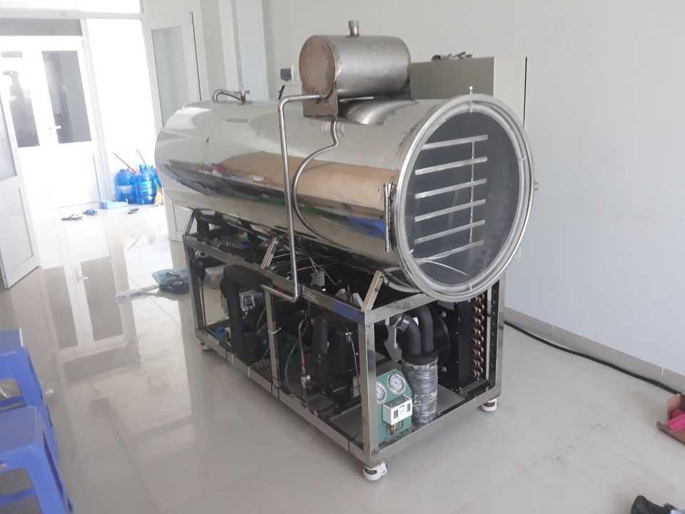 เครื่องอบแห้งแบบแช่เยือกแข็งด้วยระบบสุญญากาศอัตโนมัติ ควบคุมด้วย PLC ทำจากสแตนเลสสำหรับการแปรรูปอาหาร รุ่น WHFD-100