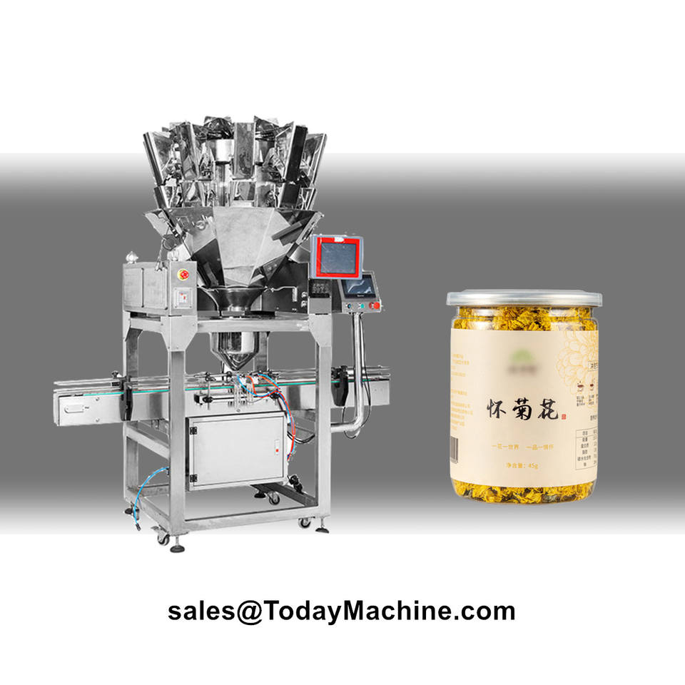 เครื่องบรรจุและชั่งน้ำหนักอัตโนมัติสำหรับข้าวโพด ข้าว อาหารเม็ด ถั่ว ข้าวโพดคั่ว ขนมกุ้ง ขนมขบเคี้ยว บรรจุในขวดและกระป๋อง