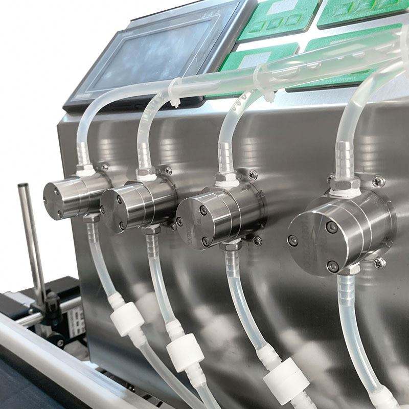เครื่องบรรจุอัตโนมัติแบบตั้งโต๊ะ ใช้ปั๊มแม่เหล็ก CNC สำหรับลิปกลอส แชมพู สบู่ ผลิตภัณฑ์แอลกอฮอล์ น้ำส้ม น้ำยาบ้วนปาก