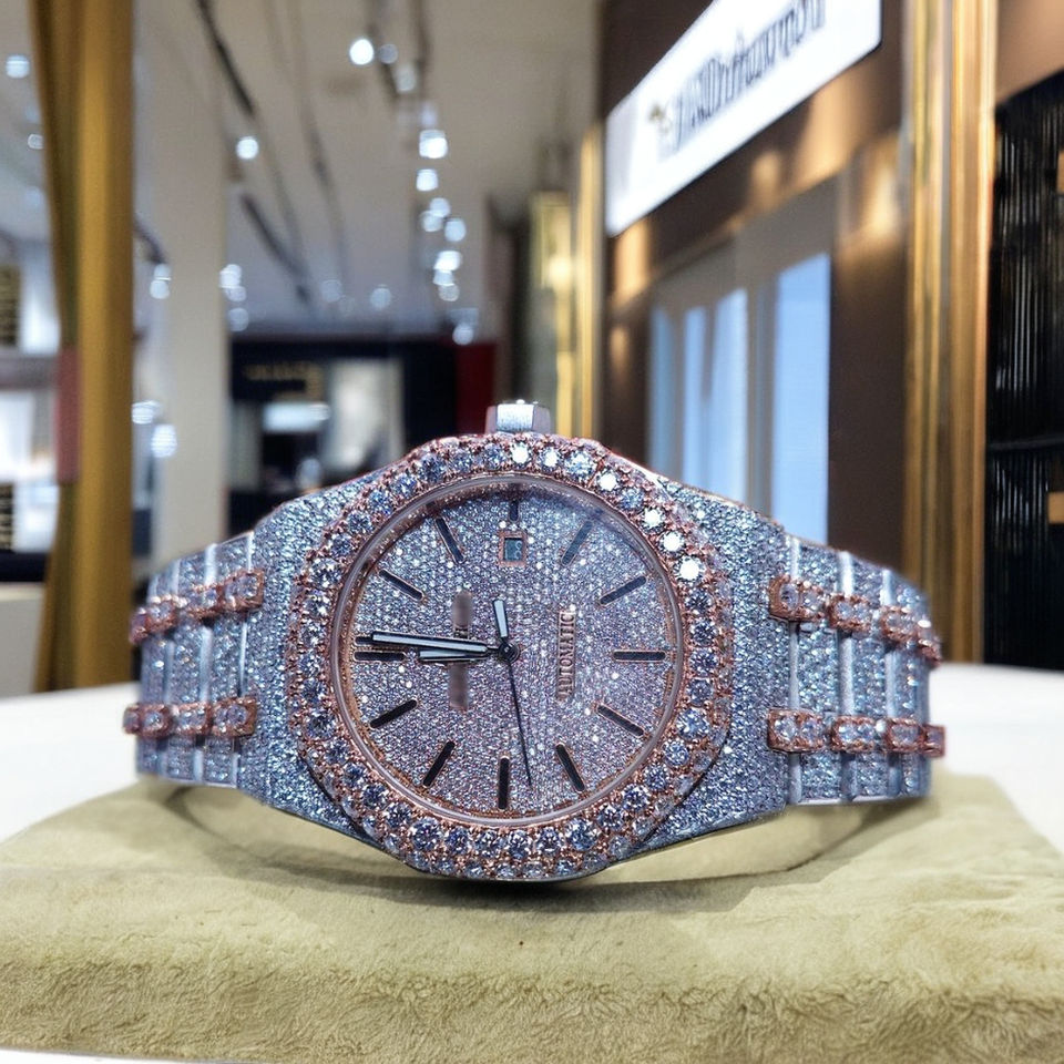 นาฬิกาข้อมือผู้ชายแบบอนาล็อก สแตนเลสสตีล ประดับเพชรโมอิสซาไนต์ คุณภาพสูง ระดับ VVS หรูหรา สไตล์ฮิปฮอป แบบอัตโนมัติ