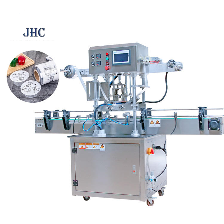 เครื่องซีลฟิล์มแบบม้วนอัตโนมัติสองหัว ความเร็วสูง สำหรับซีลถ้วย ขวด และถัง