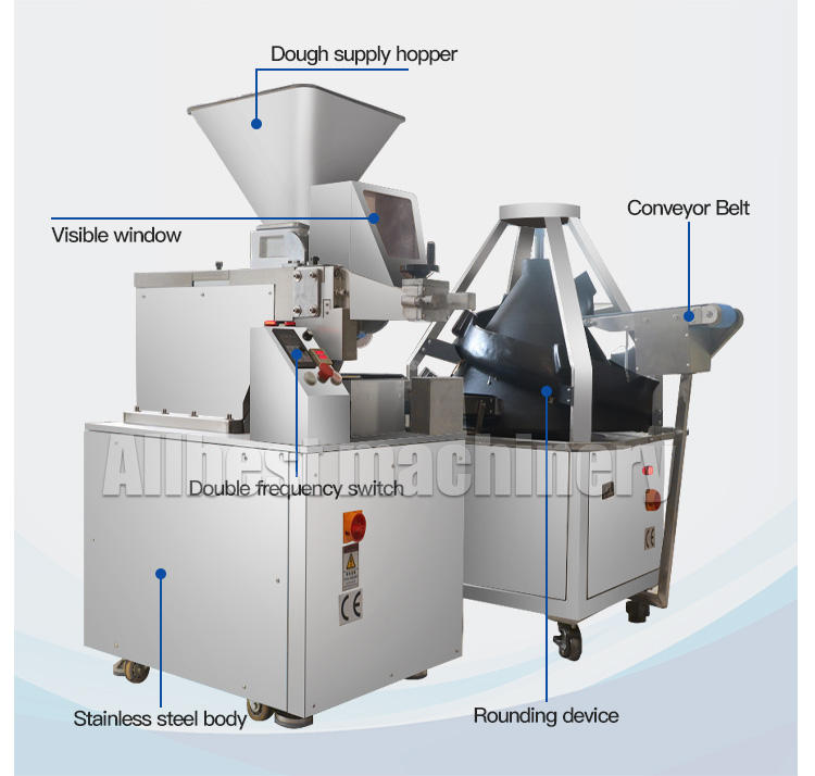 เครื่องแบ่งแป้งอัตโนมัติ เครื่องตัดแป้งขนมปังแบบต่อเนื่อง เครื่องแบ่งและปั้นแป้งกลม
