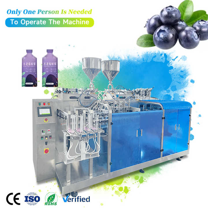เครื่องบรรจุน้ำผลไม้แบบอัตโนมัติชนิด Doypack พร้อมจุก เครื่องบรรจุและแพ็คเกจแบบถุงสำหรับเครื่องดื่มและเยลลี่