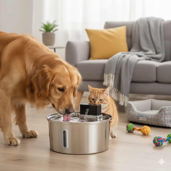 เครื่องให้น้ำสัตว์เลี้ยงอัตโนมัติ ทนทาน ทำจากสแตนเลส 304 ขนาด 3.2 ลิตร พร้อมเซ็นเซอร์ควบคุม หน้าต่างแสดงระดับน้ำ ระบบกรอง สำหรับสุนัขและแมว