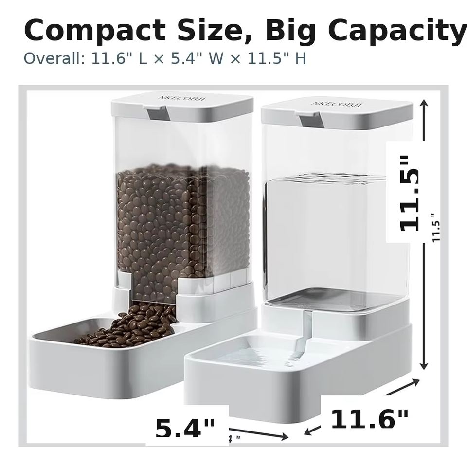 เครื่องให้อาหารสัตว์เลี้ยงแบบพกพาอัตโนมัติ - ถังน้ำ 3.8 ลิตร และความจุอาหาร 2.1 กิโลกรัม ดีไซน์พลาสติกแข็งแรง
