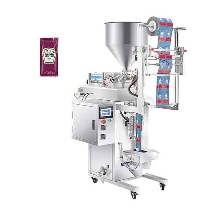 เครื่องบรรจุอัตโนมัติสำหรับบรรจุซองกระดาษเกรดอาหาร เช่น ซอสมะเขือเทศ เนยถั่ว ซอสมะเขือเทศ วาซาบิ น้ำผึ้ง