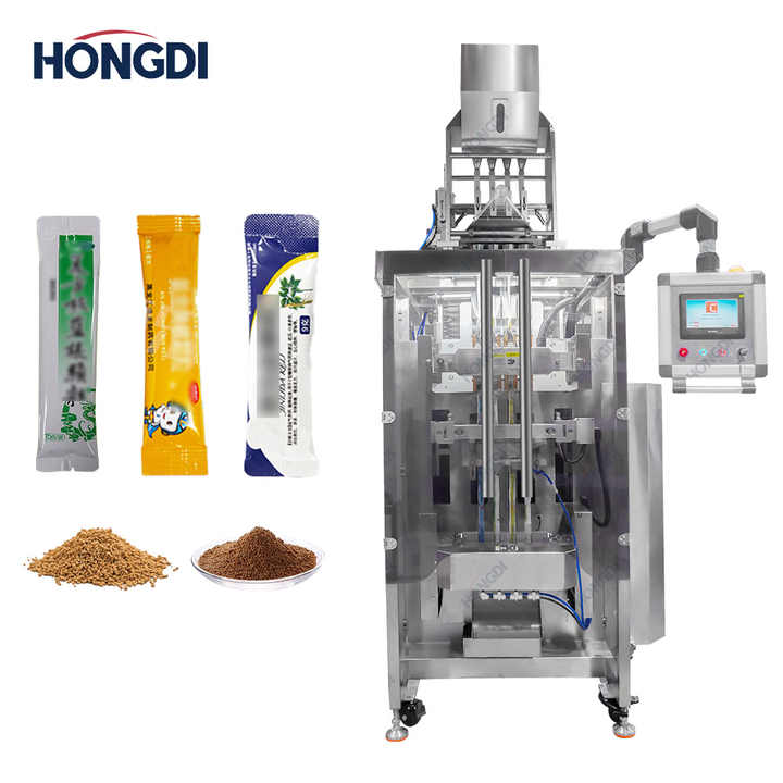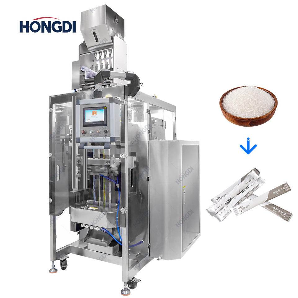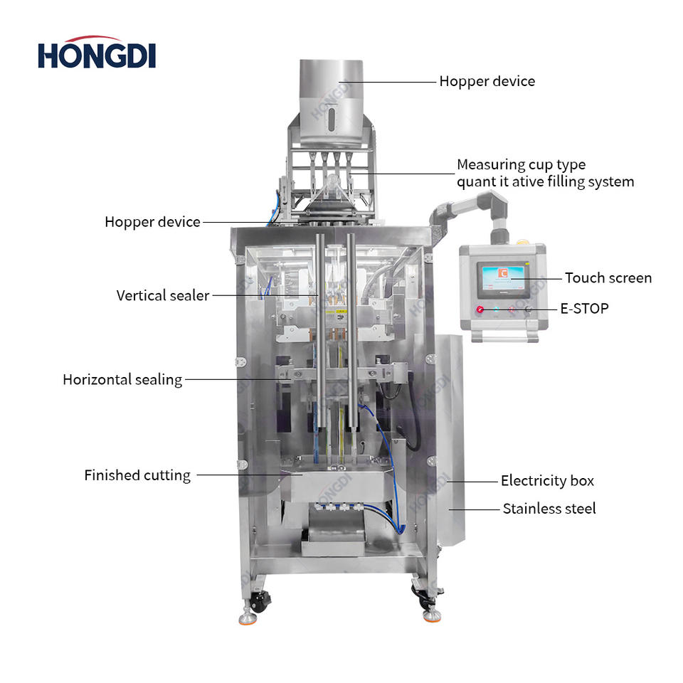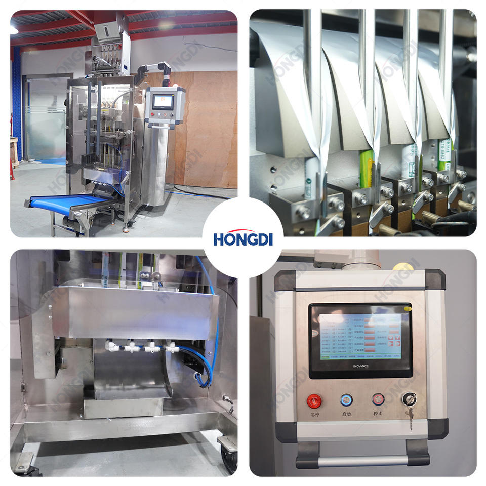 เครื่องบรรจุเม็ดแบบอัตโนมัติสี่เลนพร้อมระบบปิดผนึกด้านหลังสำหรับน้ำตาล เกลือ ข้าว เมล็ดพืช บรรจุภัณฑ์ฟิล์มพลาสติก