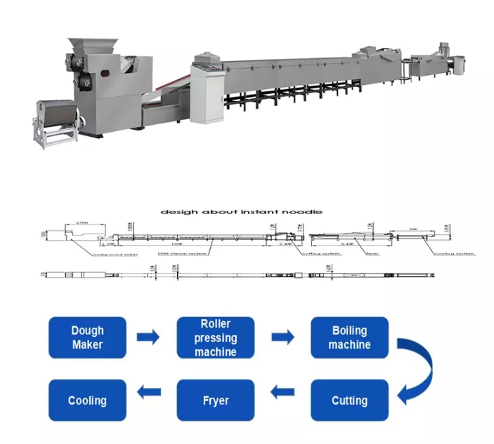 เครื่องจักรสายการผลิตบะหมี่กึ่งสำเร็จรูปแบบทอดอัตโนมัติ ความจุ 120 กิโลกรัม/ชั่วโมง พร้อมการรับประกัน 1 ปี