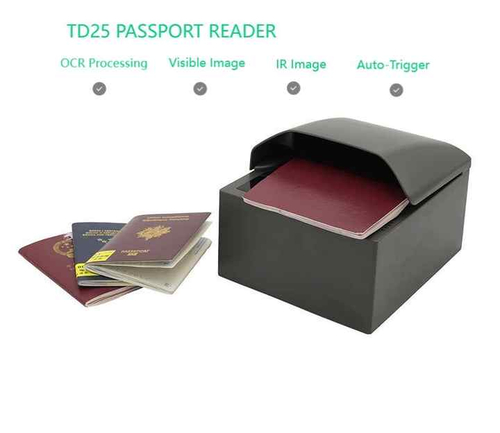 เครื่องสแกนหนังสือเดินทางอัตโนมัติแบบเต็มหน้า เครื่องอ่านเอกสาร บัตรประชาชน ใบขับขี่ ระบุตัวตนด้วย OCR/MRZ TD25 USB สำหรับสนามบิน