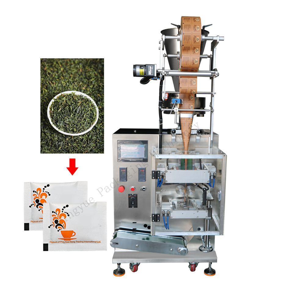 เครื่องบรรจุเม็ดเล็กแนวตั้ง3 in 1เครื่องบรรจุเม็ดกาแฟครีมน้ำตาลแบบอัตโนมัติ