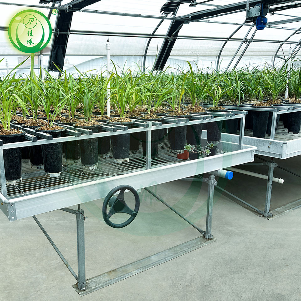 โรงเรือนอัตโนมัติพร้อมโต๊ะปลูกเคลื่อนที่แบบตาข่ายลวดชุบสังกะสีแบบจุ่มร้อนสำหรับการเพาะเลี้ยงกล้วยไม้และการเพาะเมล็ด