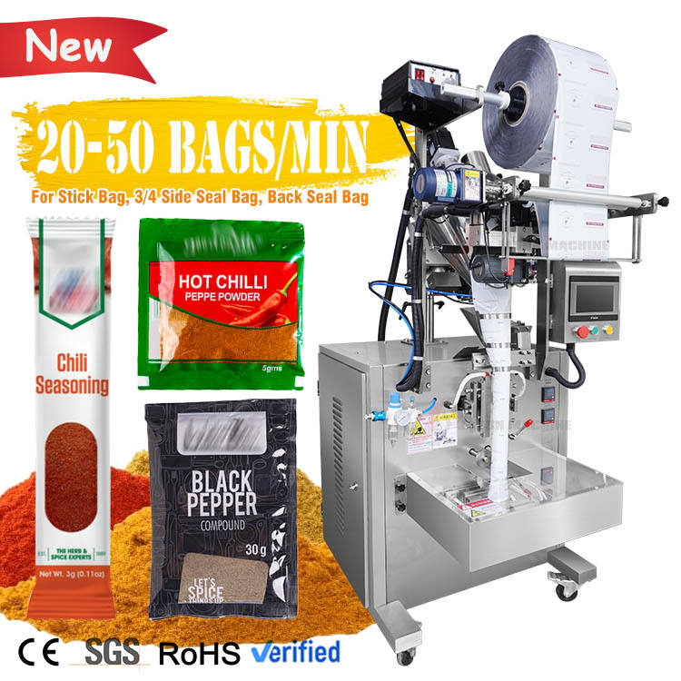 เครื่องบรรจุผงพริกไทยป่นอัตโนมัติแบบซอง เครื่องบรรจุผงเครื่องเทศยี่หร่าพริกมาซาลา