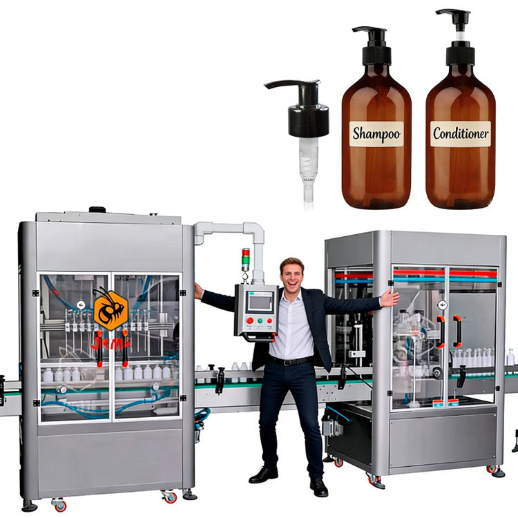 เครื่องบรรจุโลชั่นใส่ผมอัตโนมัติ สายการบรรจุและบรรจุภัณฑ์สำหรับขวดน้ำมันใส่ผม ครีมนวดผม ขวดแชมพู พร้อมเครื่องปิดฝาและติดฉลาก
