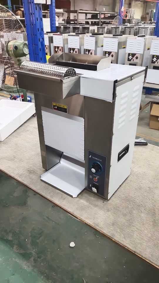 เครื่องทำเบอร์เกอร์อัตโนมัติแบบสายพานลำเลียงแนวตั้ง เกรดเชิงพาณิชย์ ยี่ห้อเบอร์เกอร์ปรินซ์ แคสเซิล สำหรับทำเบอร์เกอร์แบบเป็นชุดๆ พร้อมเครื่องปิ้งขนมปังแบบแมคโดนัลด์