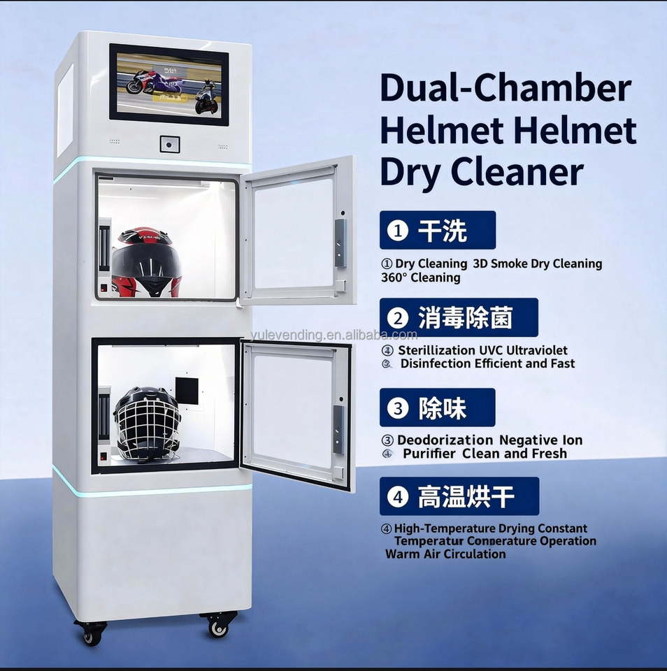 Automatic Helmet Cleaning & Disinfection Vending Machine | UVC + Atomization + High-Temp | Android Control