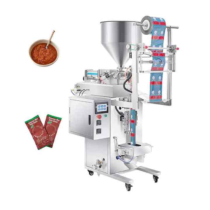 เครื่องบรรจุครีมเหลวความเร็วสูงอัตโนมัติสำหรับซอสมะเขือเทศซองพริกซอสพริกกระเป๋าติดกาวเกรดอาหาร