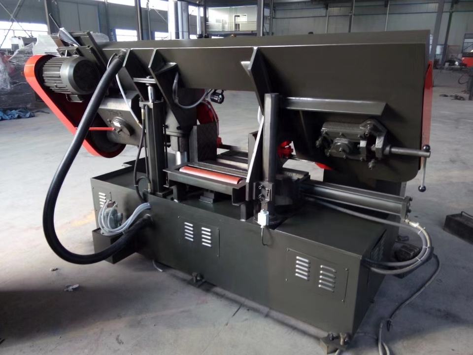 เครื่องเลื่อย GB4250ชนิดแนวนอนอัตโนมัติสำหรับการตัดโลหะที่มีวิธีการปรับความตึงด้วยตัวเองและส่วนประกอบมอเตอร์หลัก