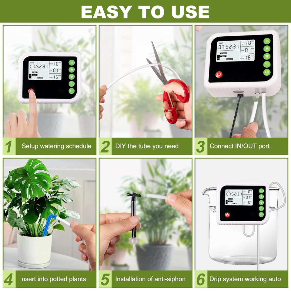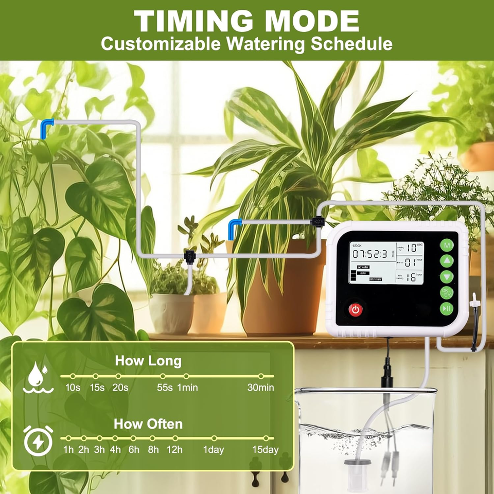 ชุดรดน้ำต้นไม้อัตโนมัติภายในอาคาร15กระถางระบบการรดน้ำด้วยตนเองจอแสดงผล LED แบบตั้งโปรแกรมได้เครื่องจับเวลาน้ำหยดชลประทาน