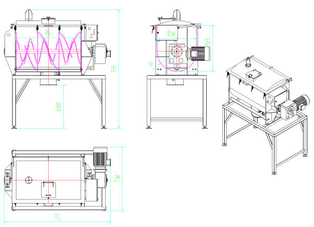 เครื่องผสมริบบิ้นแนวนอนประเภทสินค้า