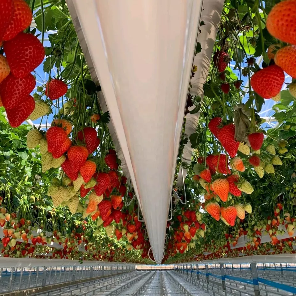 ระบบปลูกสตรอว์เบอร์รีอัตโนมัติขนาดใหญ่ในโรงเรือนไฮโดรโปนิกส์ โครงสร้างเหล็กชุบสังกะสีแบบร้อน ยี่ห้อ Skyplant
