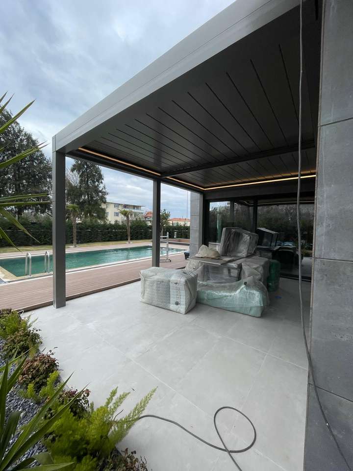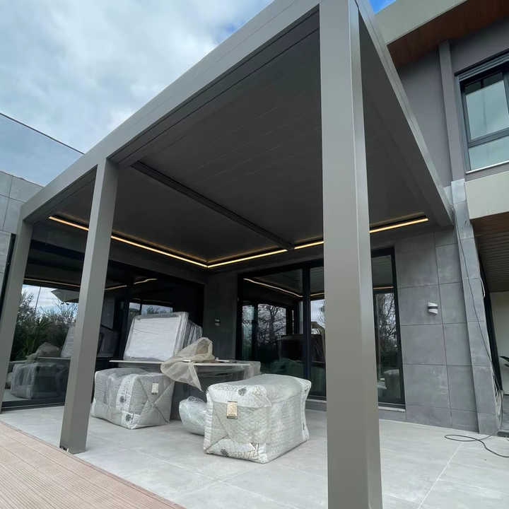 หลังคาบานเกล็ดอัตโนมัติ ระบบไบโอคลามาติก เพอร์โกลาสำหรับการพักผ่อนกลางแจ้งสุดหรูและร่มเงา บานเกล็ดอะลูมิเนียมคุณภาพสูงสุด