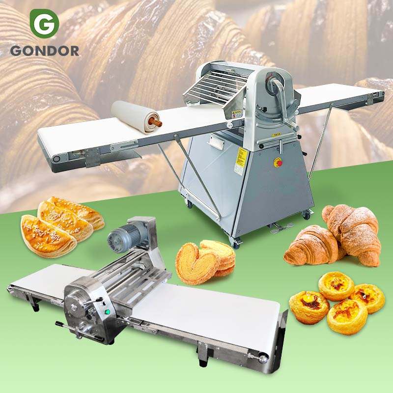 เครื่องรีดแป้งครัวซองต์แบบอัตโนมัติและแบบแมนนวลขนาดเล็ก พร้อมสายพานลำเลียงแบบตั้งโต๊ะ สำหรับใช้ในบ้าน