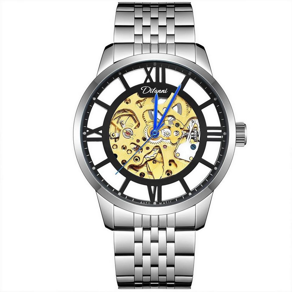 นาฬิกากลไกอัตโนมัติ unisex ใหม่หรูหราธุรกิจสายหนังคริสตัลอนาล็อกกันน้ำความแข็งสูงนาฬิกาข้อมือกระจก