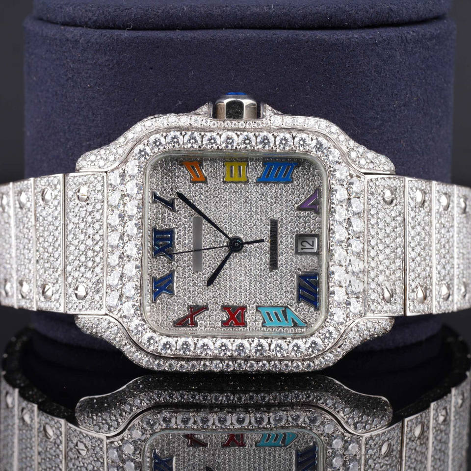 นาฬิกามอยส์ซอไนต์อัตโนมัติพร้อมตัวเลขสีรุ้งเคลื่อนไหวด้วยตัวเลขโรมันแบบญี่ปุ่นนาฬิกาสแตนเลสสตีลหรูหราขายส่ง