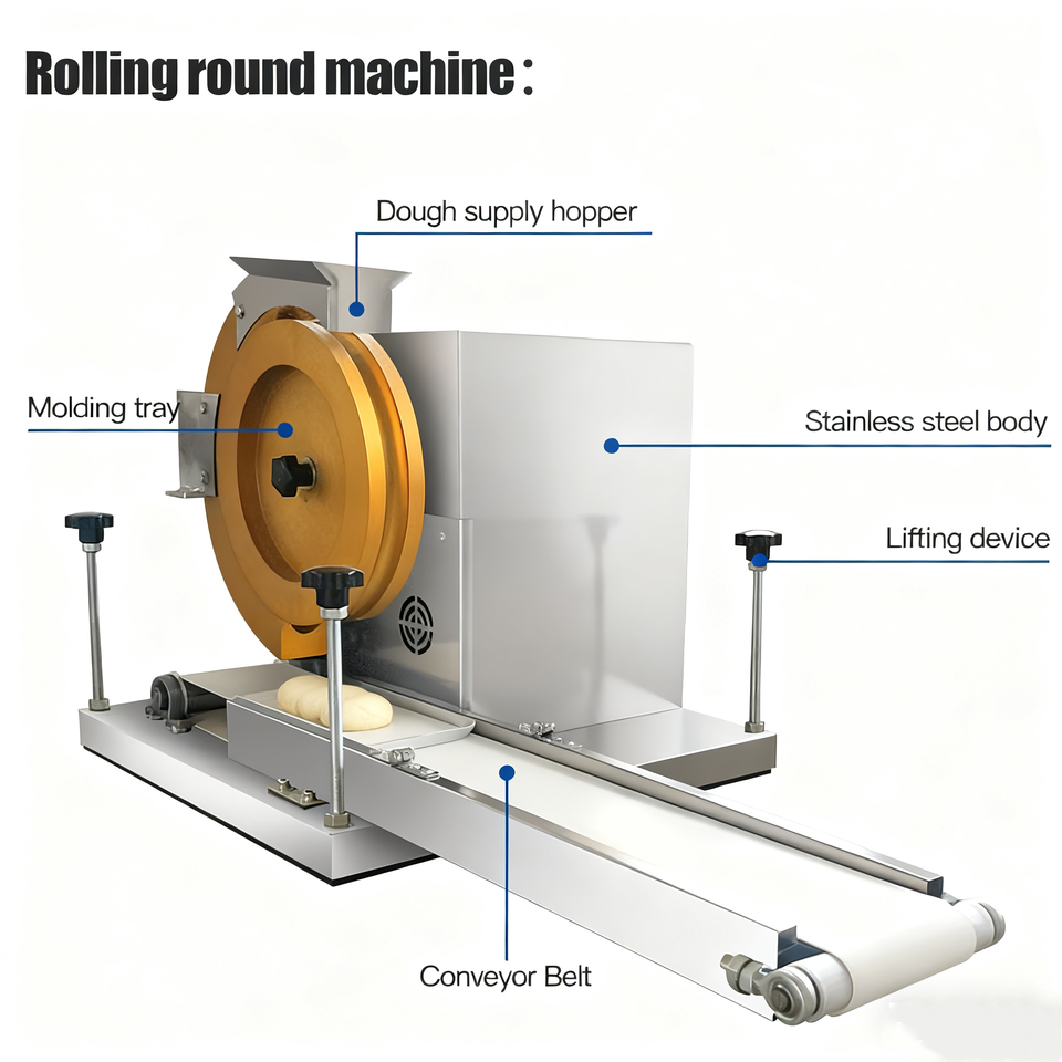 เครื่องปั้นแป้งอัตโนมัติแบบมอเตอร์ ทำจากสแตนเลสเกรดอาหาร สำหรับตัด แบ่ง และปั้นแป้งให้เป็นลูกกลม