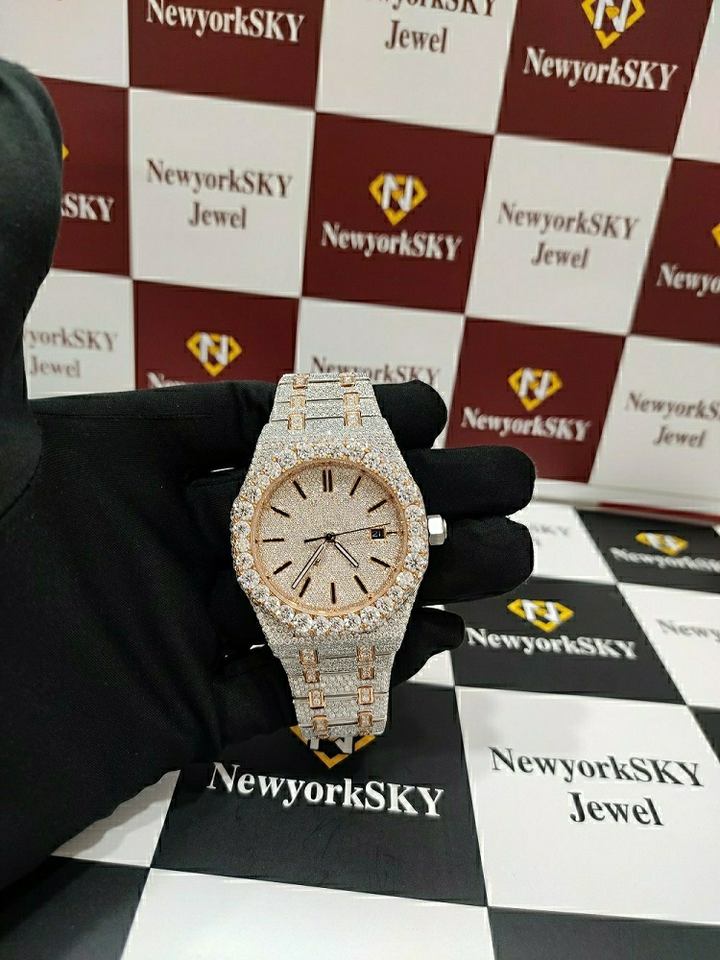 นาฬิกาสแตนเลสสุดหรูสำหรับผู้ชายผู้หญิง VVS Moissanite ระบบกลไกอัตโนมัติ