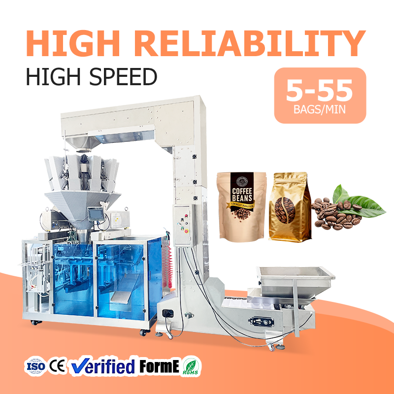 เครื่องบรรจุภัณฑ์อัตโนมัติแบบมัลติฟังก์ชั่นสำหรับบรรจุเมล็ดกาแฟ ถั่วลิสง เกลือ อาหารเม็ด บรรจุภัณฑ์ซิปล็อคแบบ Doypack