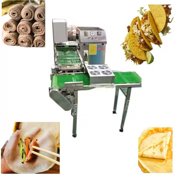 เครื่องทำโรลสปริงโรล ป๊อปเปียห์ ลัมเปีย อินเจรา แพนเค้ก ซาโมซ่า จาปาตี อัตโนมัติอเนกประสงค์ ทำจากสแตนเลส 304 ความจุ 20 ชิ้น/นาที