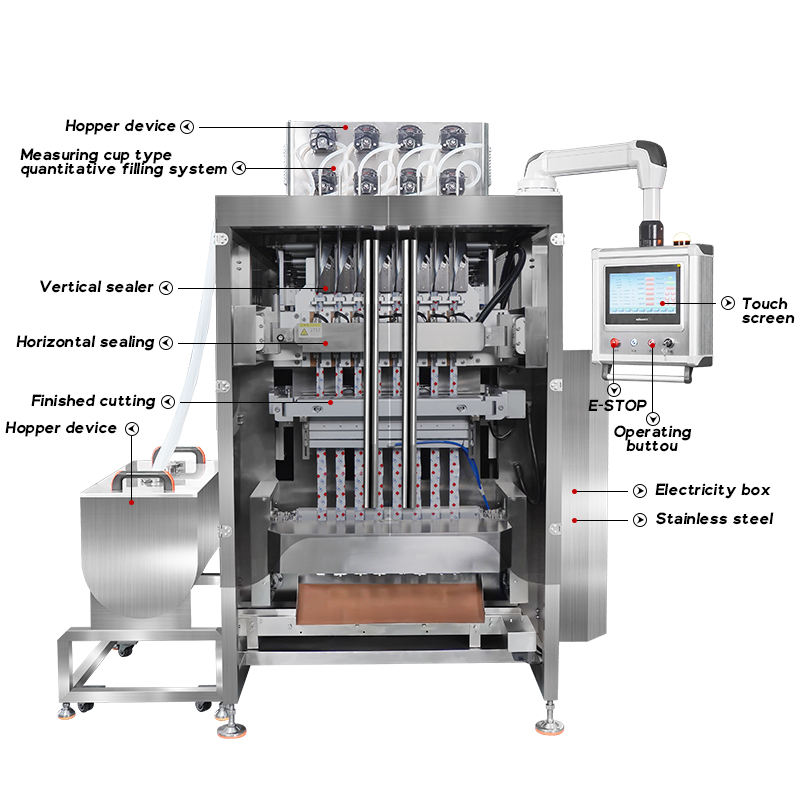 เครื่องบรรจุซองซอสซีอิ๊วอัตโนมัติแบบหลายเลน เครื่องบรรจุซองน้ำส้มสายชู น้ำมันพริก น้ำมันปรุงอาหารแบบหลายสายพาน