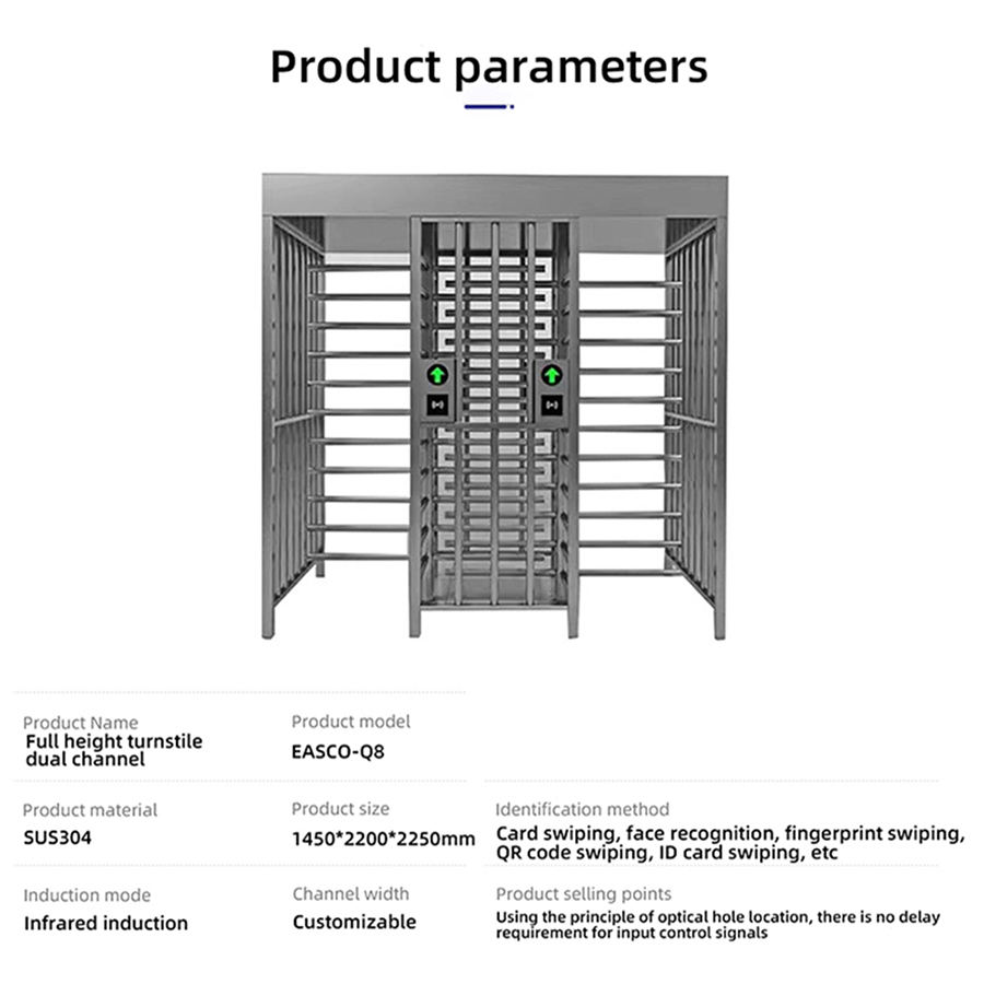 ระบบประตูหมุนอัตโนมัติกลางแจ้งแบบกันน้ำ ความเร็วสูง พร้อมระบบรักษาความปลอดภัย ราคาประหยัด ประตูหมุนเต็มความสูงสำหรับโรงงาน