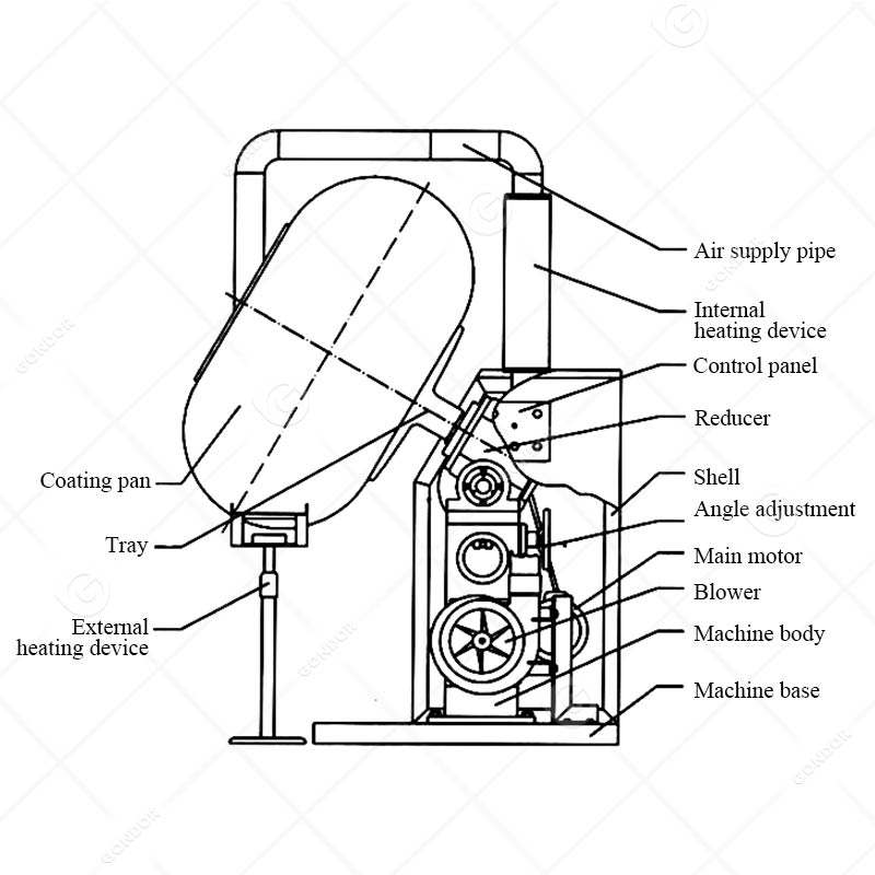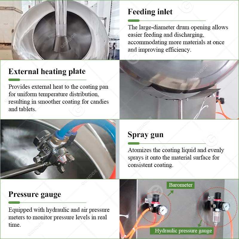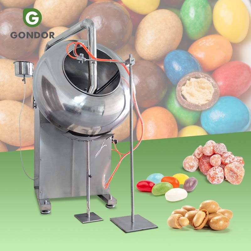 เครื่องเคลือบผงอัตโนมัติสำหรับผลิตภัณฑ์ใหม่ที่มีประสิทธิภาพสูง เช่น ถั่วลิสงเคลือบน้ำตาลคาราเมล ลูกอมกัมมี่ โดนัท ช็อกโกแลต และเมล็ดถั่ว