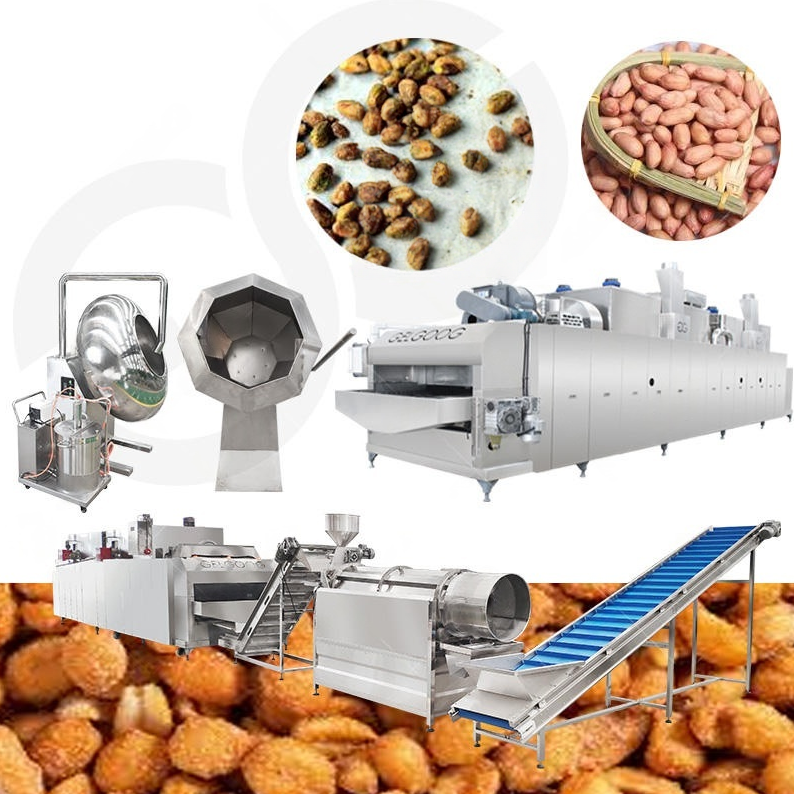 เครื่องเคลือบน้ําตาลถั่วลิสงอัตโนมัติเครื่องเคลือบถั่วรสคั่วสายการผลิตเครื่องคั่วรสขนม
