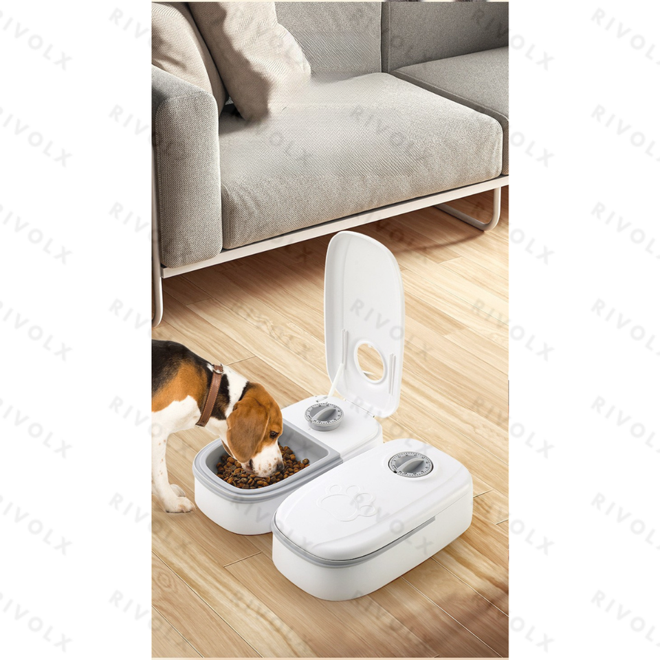 เครื่องให้อาหารสัตว์เลี้ยงอัตโนมัติอัจฉริยะพร้อมตัวตั้งเวลา ชามพลาสติกทนทานสำหรับแมวและสุนัข-เครื่องจ่ายอาหาร