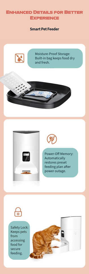 เครื่องจ่ายอาหารสัตว์เลี้ยงอัตโนมัติพร้อมฝาล็อค