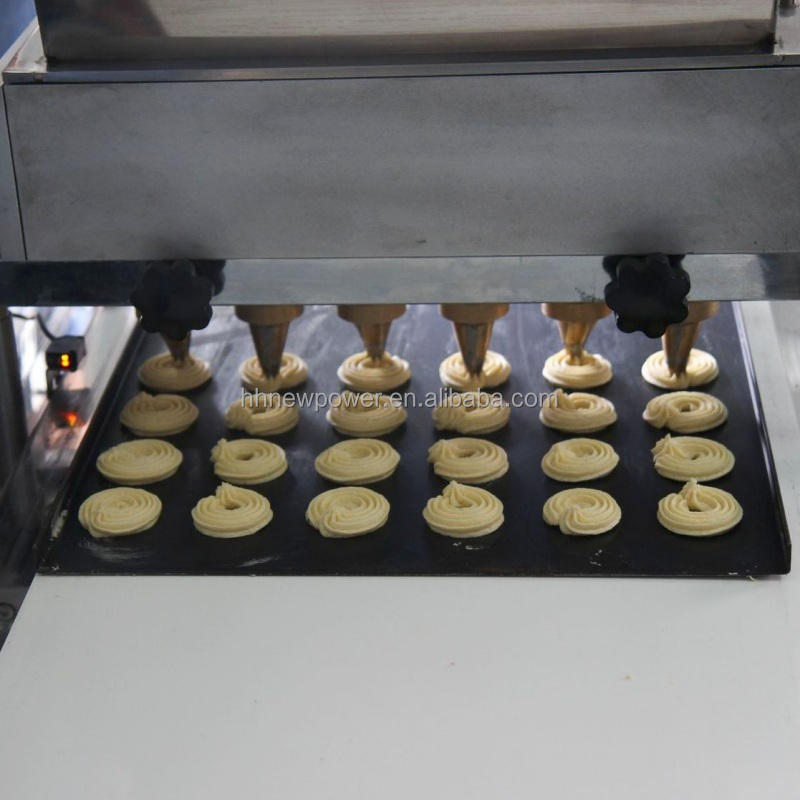 เครื่องอัดรีดคุกกี้บิสกิตแบบนิวเมติกแบบอัตโนมัติเครื่องทำขนมแบบหลายหยดพร้อมไส้คัพเค้กแบบลวดตัด