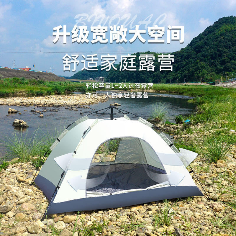 เต็นท์ป๊อปอัพอัตโนมัติ สำหรับ 2 คน สำหรับตั้งแคมป์กลางแจ้ง กันน้ำ ติดตั้งง่าย ประตูเดียว หน้าต่างเดียว สีขาวงาช้าง