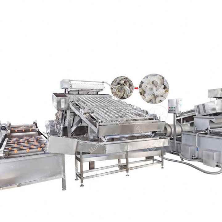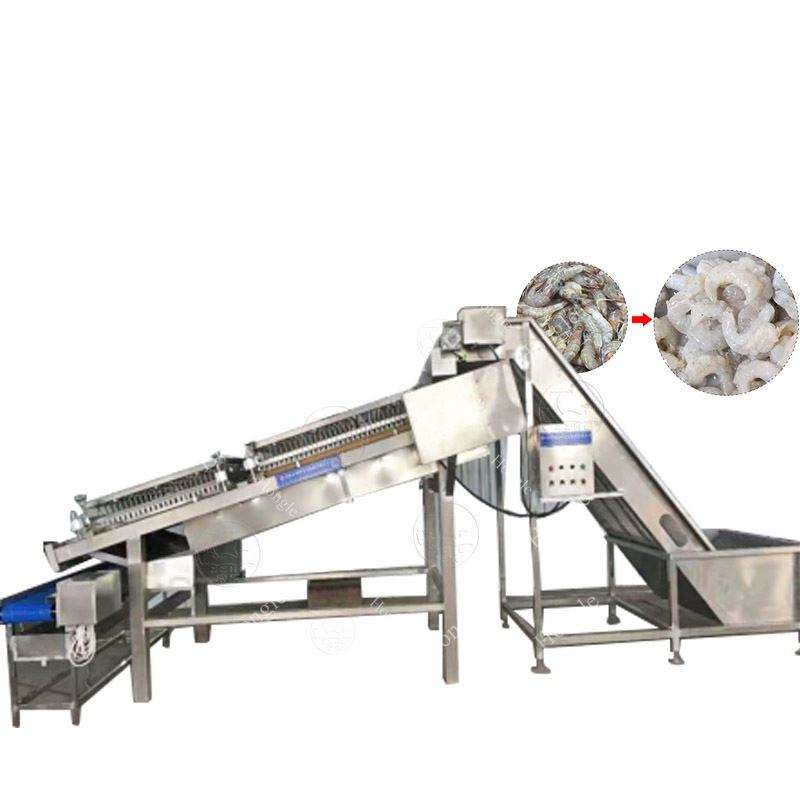 เครื่องปอกเปลือกและกำจัดผิวกุ้งขาวอัตโนมัติสายการผลิตสำหรับใช้ในฟาร์ม