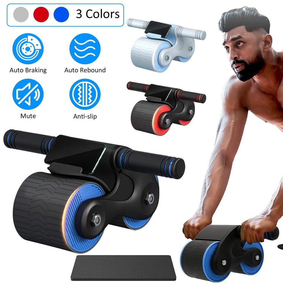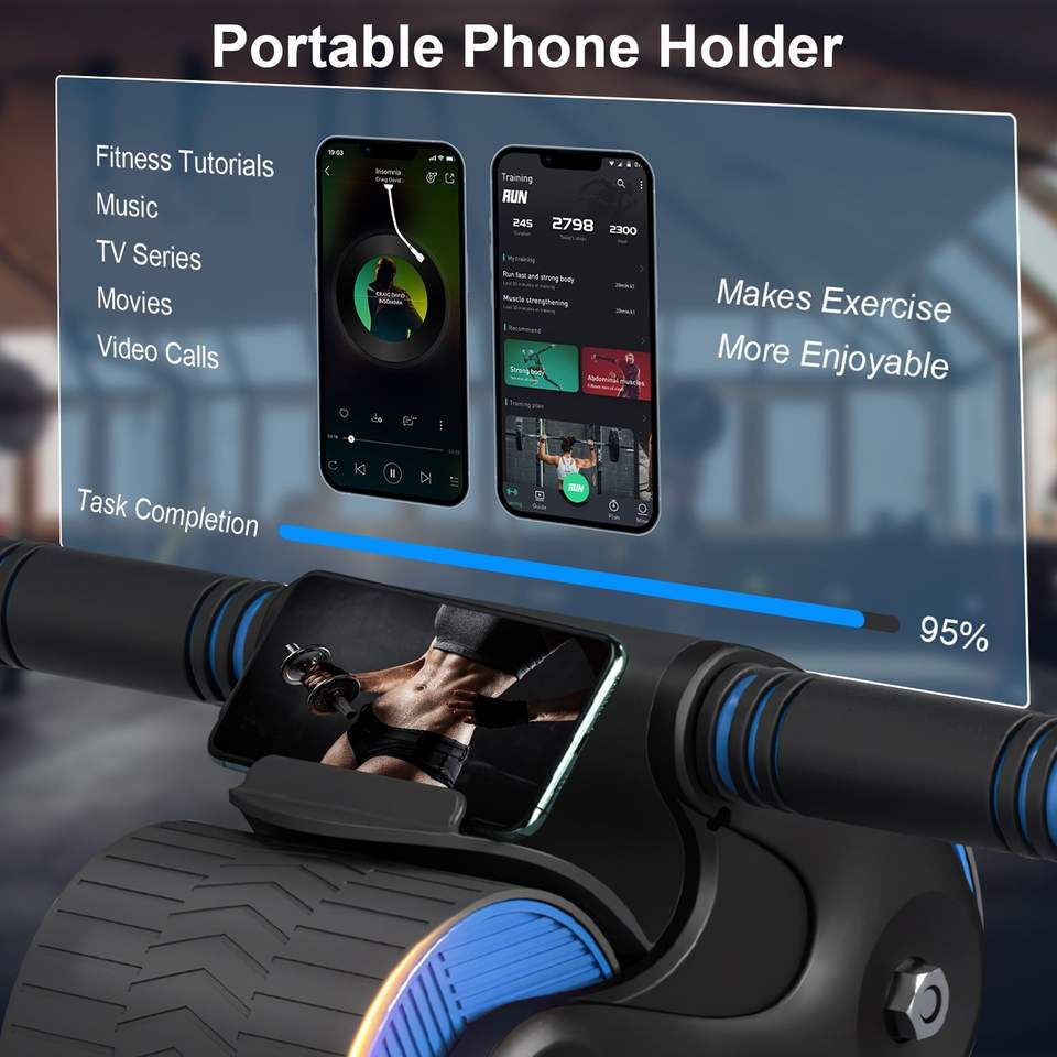 แผ่นรองเข่ากันลื่นแบบเด้งกลับอัตโนมัติสำหรับล้อ AB Roller พร้อมที่วางโทรศัพท์ อุปกรณ์ออกกำลังกายที่บ้านสำหรับผู้ชายและผู้หญิง
