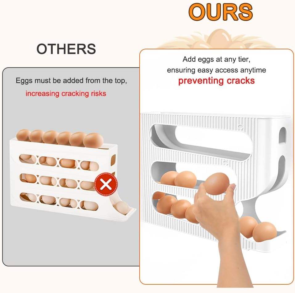 ที่วางไข่แบบม้วนลงอัตโนมัติ, ชุดจัดเก็บไข่ 2 แพ็คสำหรับตู้เย็น, ภาชนะประหยัดพื้นที่, ที่จ่ายไข่สำหรับตู้เย็น