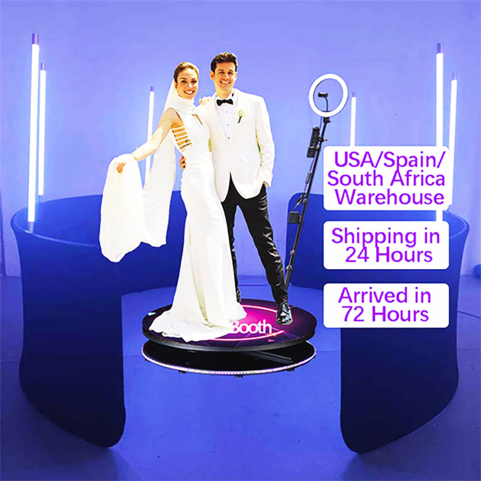 รีโมทคอนโทรลบูธภาพถ่าย360 3D หมุนอัตโนมัติพร้อมไฟเติม LED