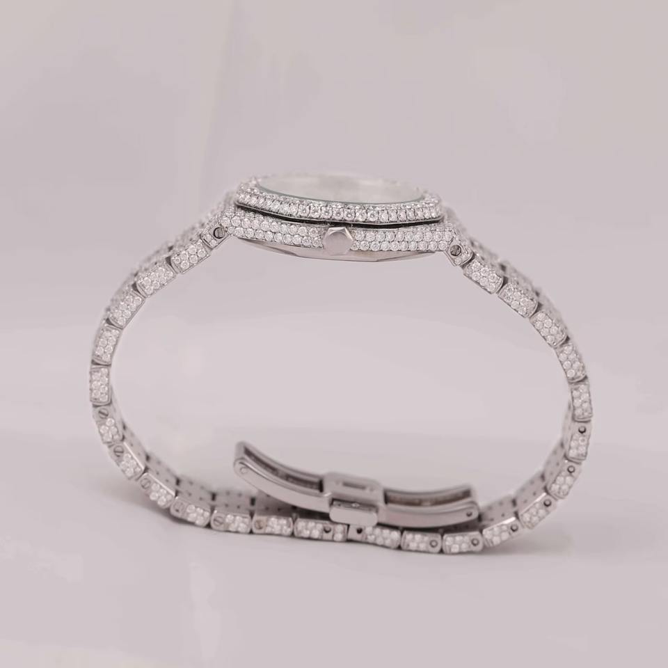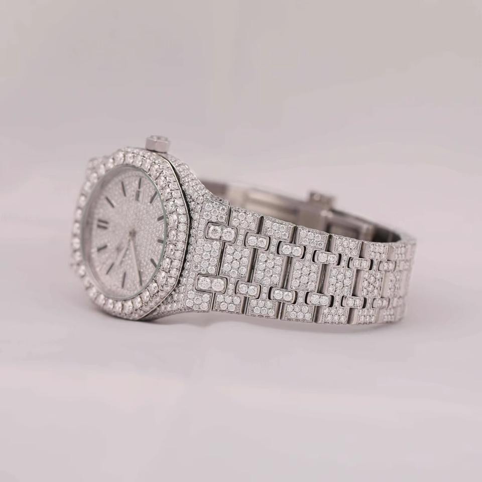 นาฬิกาเพชรโมอิสซาไนต์ทรงกลมอัตโนมัติ D VVS1 พร้อมฟังก์ชั่นวันที่ สไตล์ฮิปฮอป ตัวเรือนเหล็ก สำหรับผู้ชายและผู้หญิง - ผู้ผลิตจากอินเดีย