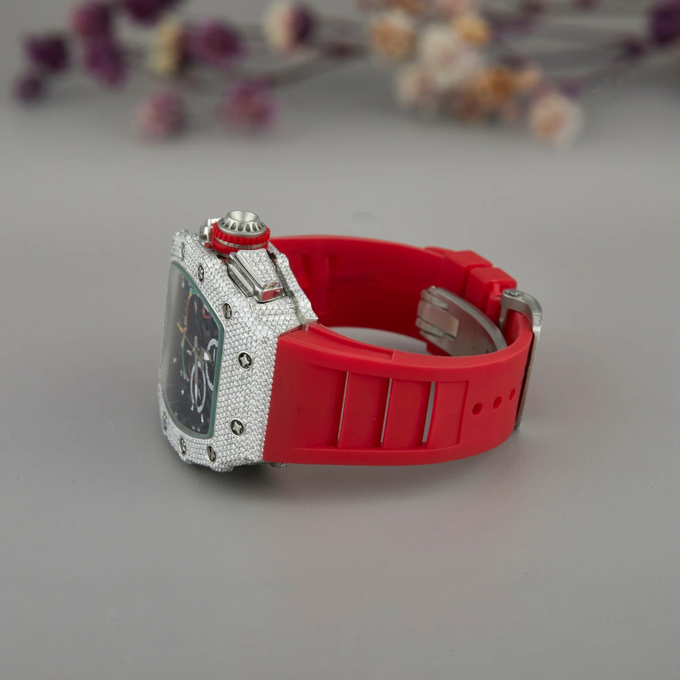 นาฬิกาอัตโนมัติแบบโครงกระดูกทัวร์บิญอง มีสองรุ่นแบบอัตโนมัติจากญี่ปุ่น สายยางสีแดง นาฬิกาสำหรับผู้ชาย