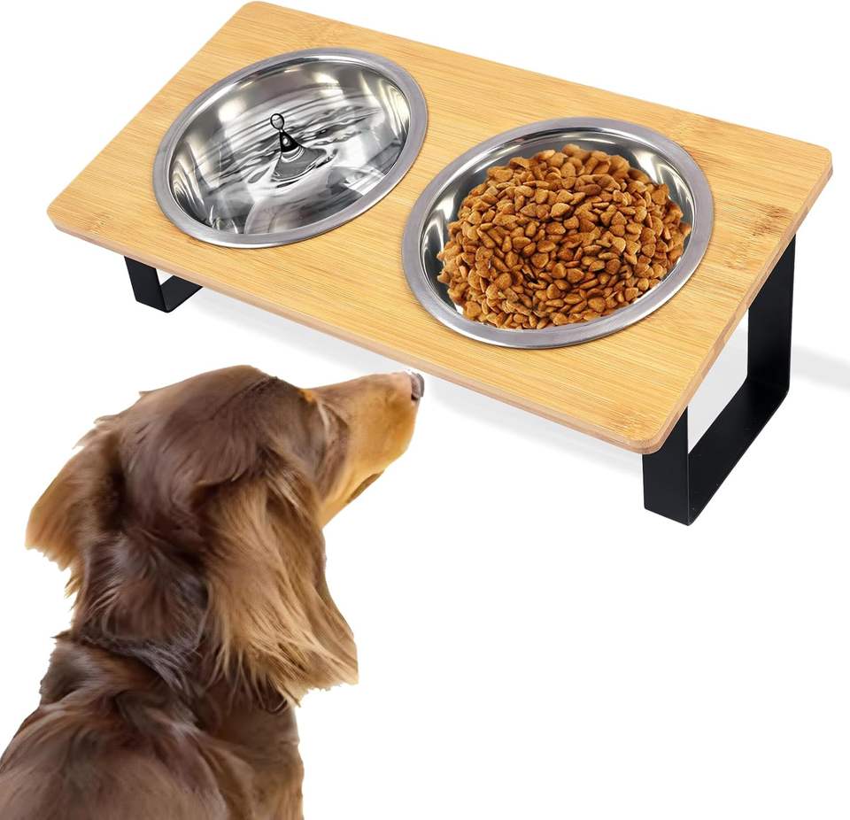 ชามสเตนเลสสำหรับสัตว์เลี้ยงแบบอัตโนมัติพร้อมฐาน XL ทำจากไม้สามารถปรับแต่งโลโก้ได้ไม่ลื่นสำหรับสุนัข/แมวสำหรับอาหาร/น้ำ-สินค้าขายดี